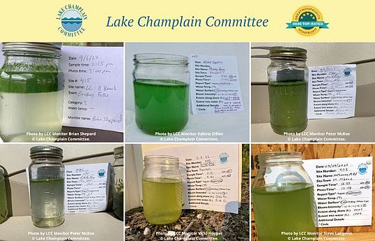 Scroll through this email to see what influences the color variance of blooms, and view pictures of the turquoise splotches of cyanobacteria in Knapp Pond in Cavendish VT, a bubbling brew of a bloom on the Winooski River’s Derway Cove inlet, and blooms that swirled around Lake Champlain’s St. Albans Bay Park for much of the week.