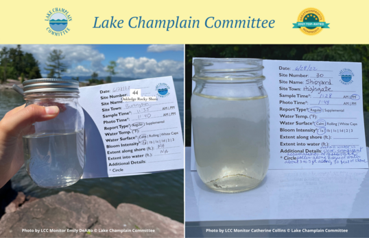 We received mainly good water quality reports during the second week of the cyanobacteria monitoring program. Scroll through this email for details of Week 2 2022 monitoring results from 6/26/22 through 7/2/22; photos of clean water conditions at Lake Champlain’s Button Bay, Oakledge Park, North Beach, and Valcour Island; check out a cool monitor innovation for water sampling without getting wet; and learn about the ingredients for a bloom.