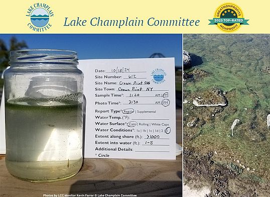 Week 10 was busy for the LCC cyanobacteria monitoring team as Lori announced her upcoming retirement (12/31/24), Alexa got married, Lindsey headed off to trek for a week in the wilds of Montana and Alberta, and Eileen wrapped up a big project on native aquatic plants. On the cyanobacteria beat, blooms dominated the scene in some Quebec portions of Lake Champlain’s Missisquoi Bay and parts of St. Albans Bay.