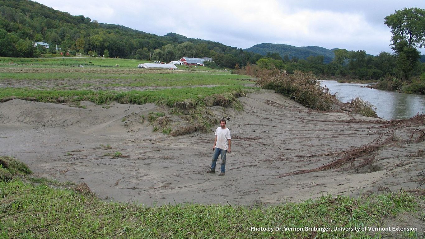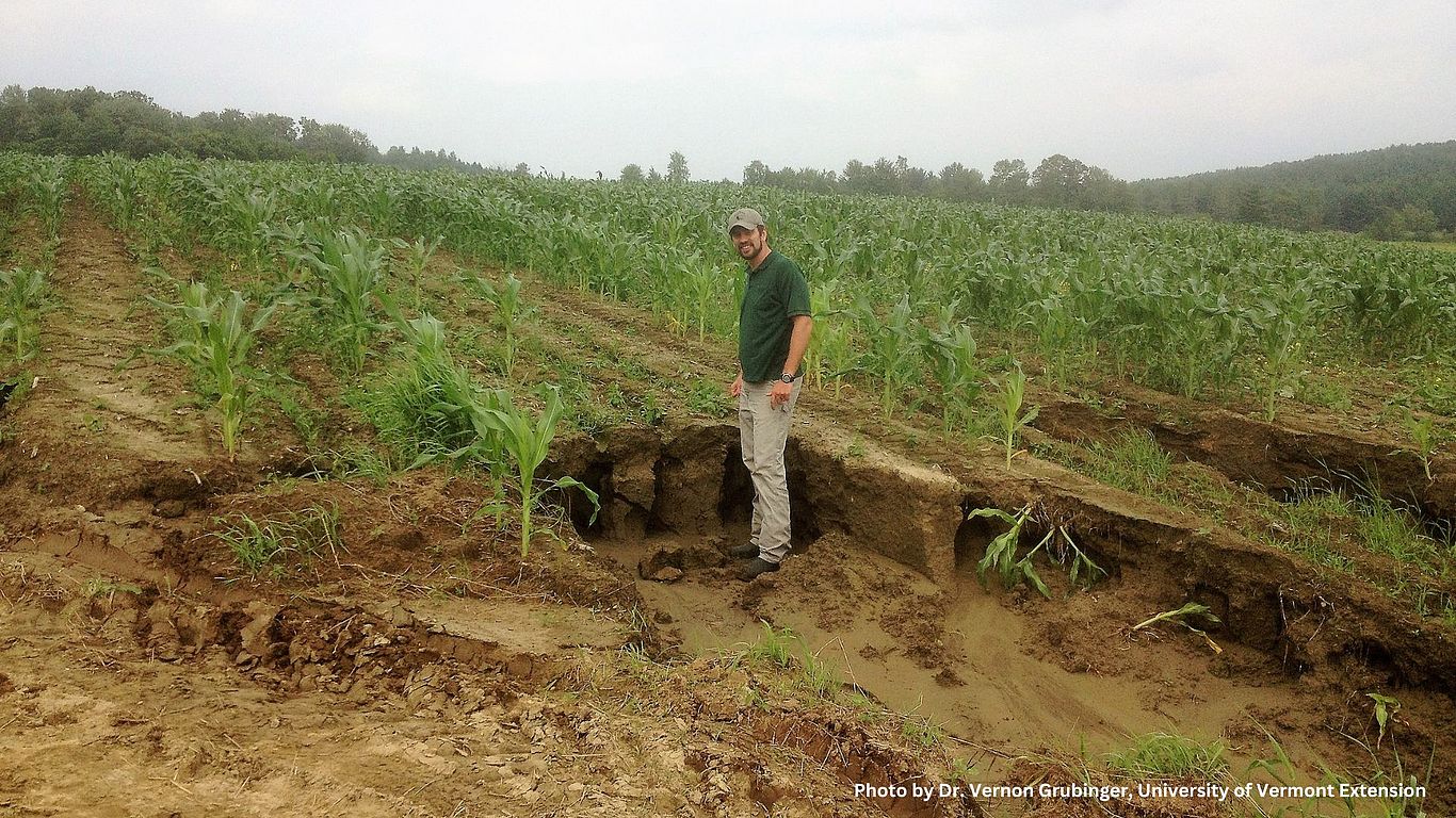 There are many implications from more rain and more intense rainstorms, but one major problem associated with this is erosion. Topsoil that may have taken generations to build can be washed away in a single heavy rain event. According to a study from Nearing et al., erosion increases at a rate 1.7 times the rate of average annual rainfall. Much of Vermont and upstate New York’s farmland is located in fertile river valleys and floodplains, putting them at high risk of soil loss from erosion. The rise in “Very Heavy Precipitation Events” is the major trigger for increased erosion.