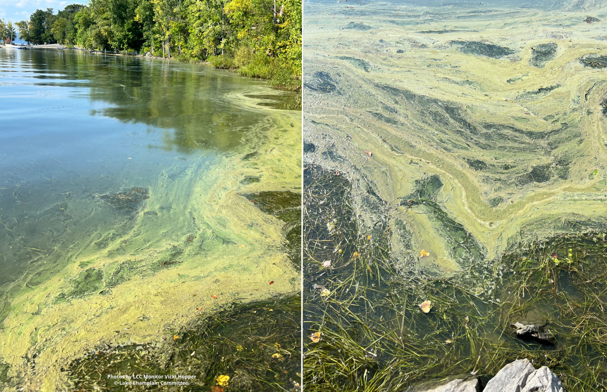 Detecting cyanobacteria is like learning a new instrument or sport—it takes practice. Explore the cyanobacteria section of LCC’s website for a host of resources that will help you identify cyanobacteria. Attend an informational session to learn more or get trained to become a cyanobacteria monitor and help us gather information about water conditions on Lake Champlain and inland lakes. Subscribe to LCC’s weekly water quality reports: https://www.lakechamplaincommittee.org/lcc-at-work/cyanobacteria-in-lake/cyanobacteria-weekly-report-subscription. During the monitoring season you’ll receive weekly emails about conditions reported during the previous week along with photographs and information to help you learn how to recognize cyanobacteria and differentiate it from other phenomena like duckweed and filamentous green algae which don’t produce cyanotoxins.