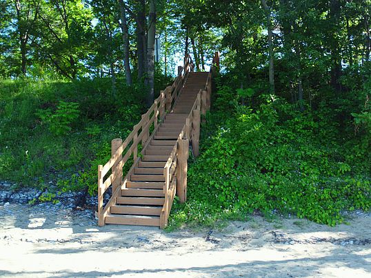 Like vegetation, beaches help dampen the force of waves. The gradual slope towards shore that beaches provide allows wave energy to be expended before hitting higher ground. Sand dunes, where they exist, act as natural sea walls in blunting the force of wind and waves. Retaining walls set back from the water allow natural beach development and increase the life of the wall by enhancing protection at the toe of the structure. Walls set at the lakeshore have a shorter lifespan and a greater negative impact on the ecology of the lake.