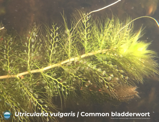 Common bladderwort (Utricularia vulgaris) is a native aquatic plant and is unique among submersed species in Lake Champlain--it‘s a carnivorous plant and is technically the fastest plant in the world. The tiny bladders on the plant are traps that, when the hair-like triggers around the bladder are set off, suck in water and seal in the aquatic microorganism that set it off--a process that takes about 10 milliseconds.