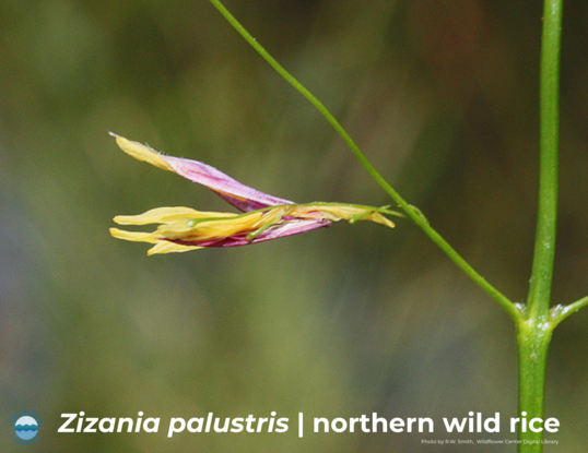 Northern wild rice (Zizania palustris) is a robust, native, aquatic, annual grass that produces large grains. The plants grow in shallow water in small lakes and slow-flowing streams; often, only the flowering head of wild rice rises above the water. The grain is eaten by dabbling ducks and other aquatic wildlife.The grain was historically and is still gathered and eaten throughout North America.